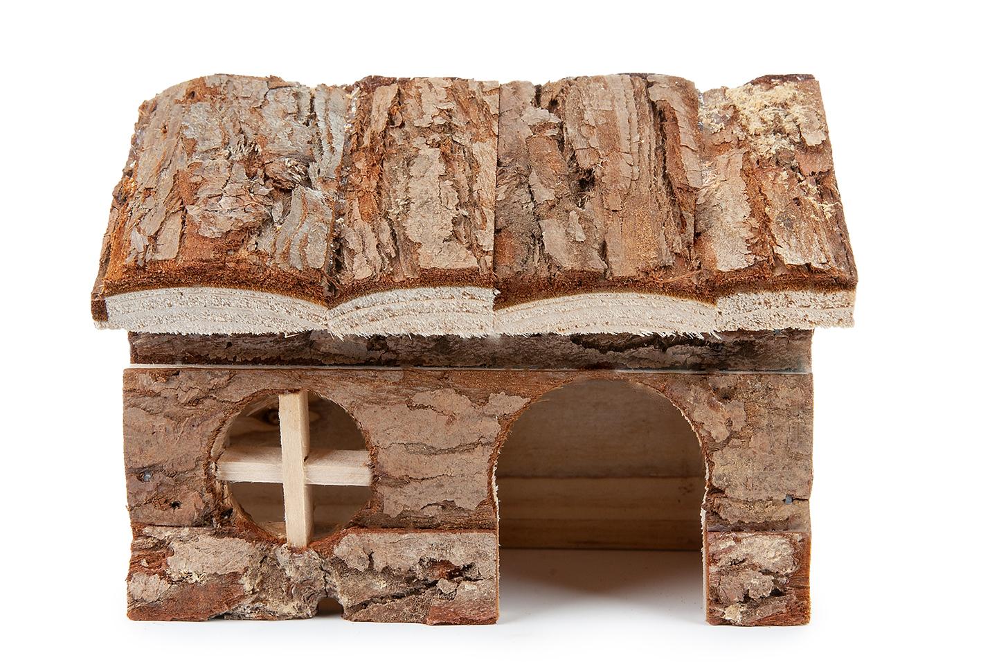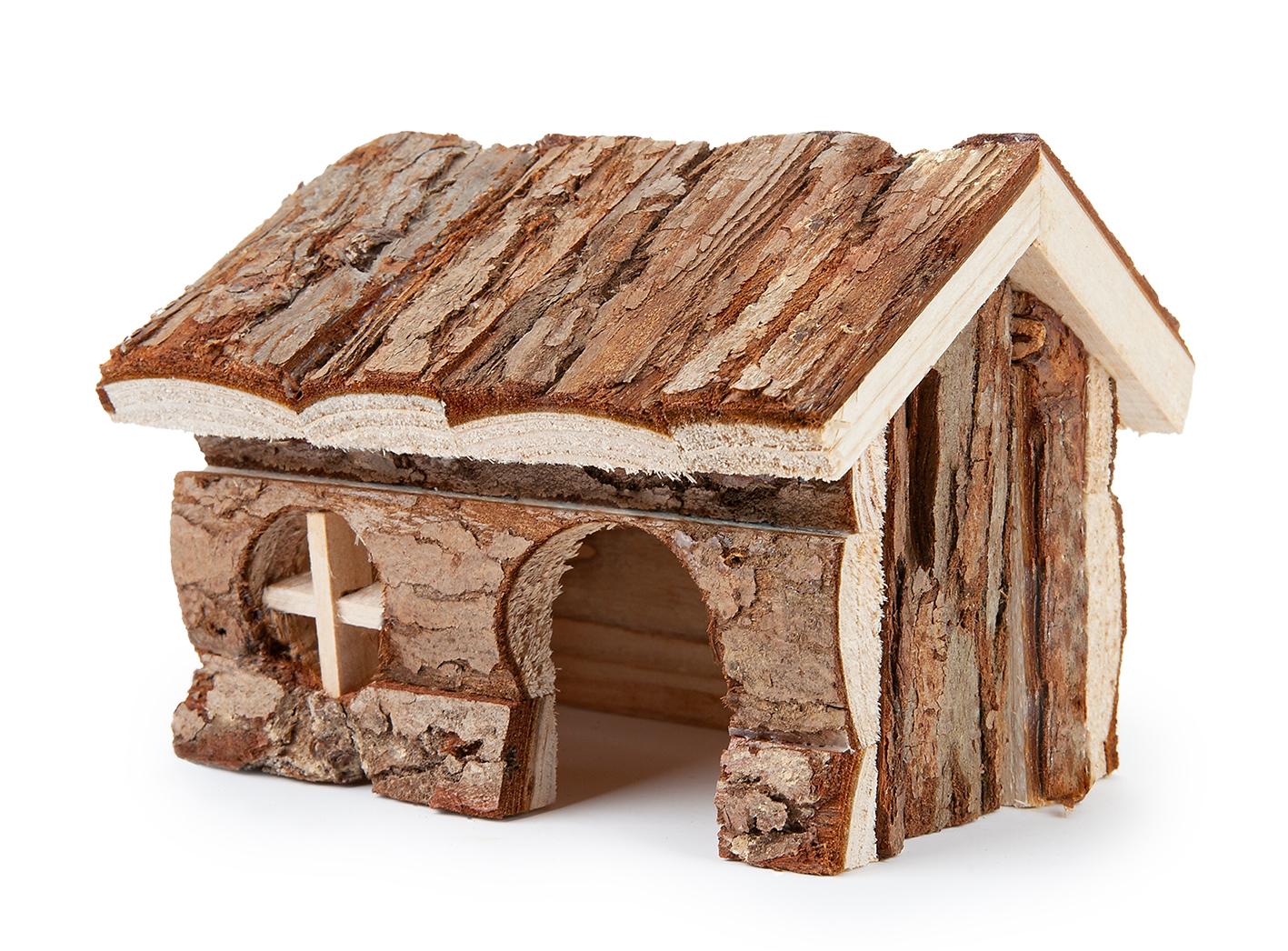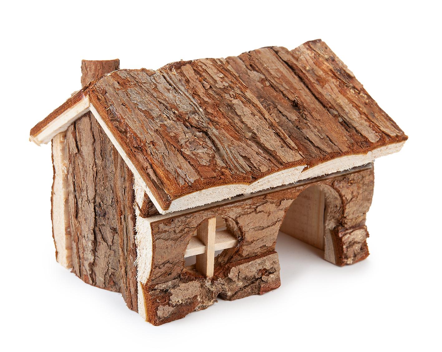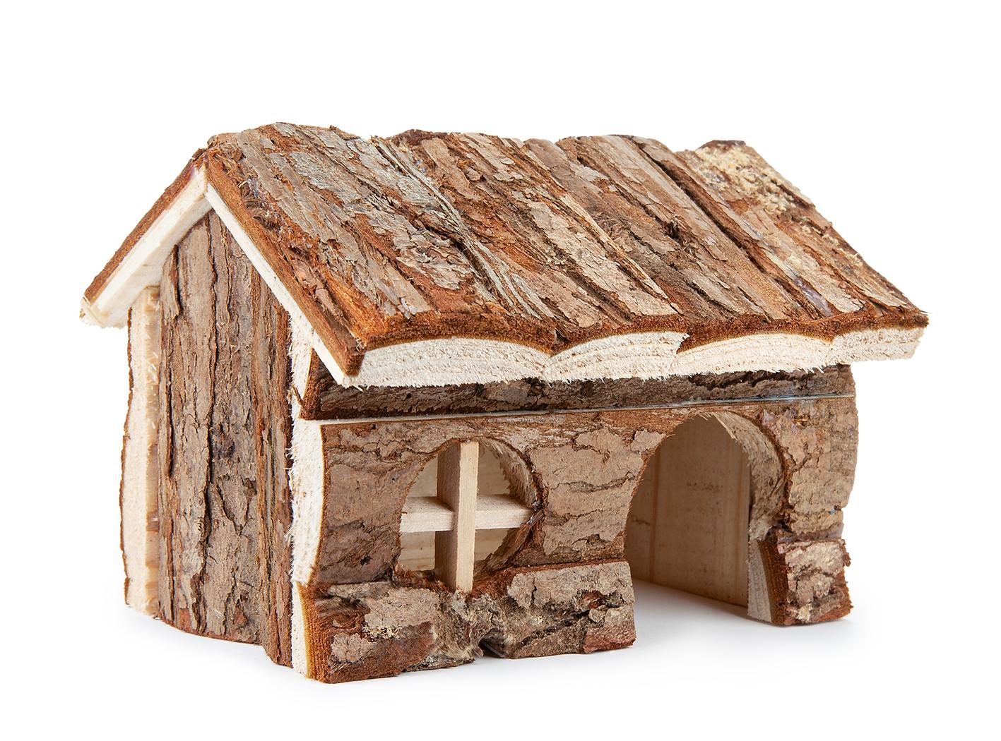 Domek dla chomika to obowiązkowy element wyposażenia jego klatki. Domek wykonany został z surowego drewna iglastego, które nie jest impregnowane ani lakierowane, dzięki temu jest całkowicie bezpieczny. Stanowi doskonałe schronieniem dla gryzoni, może także służyć do ścierania paznokci czy zębów.