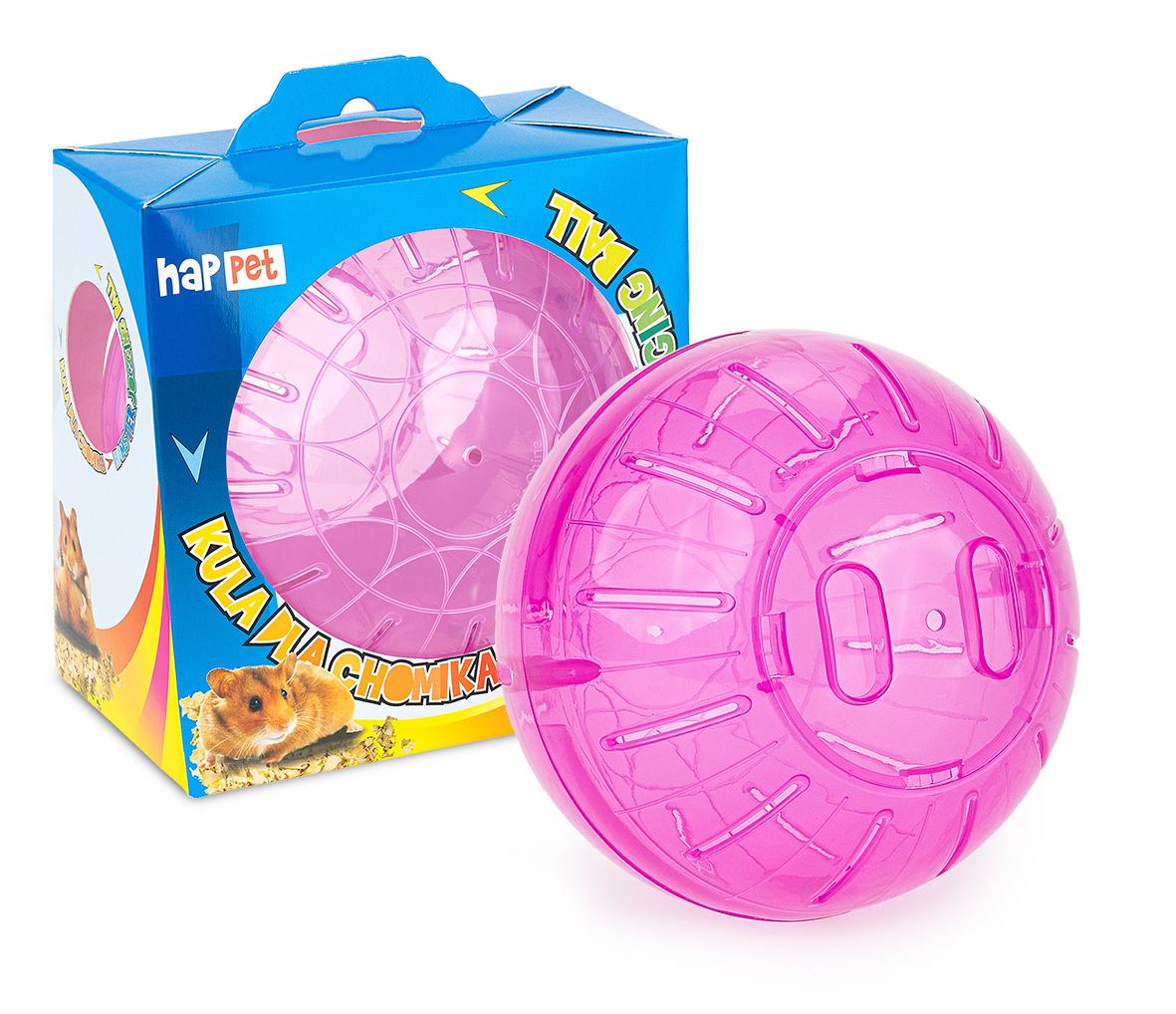 Plastikowa, transparentna kula z otworami wentylacyjnymi dla chomików i innych małych gryzoni.