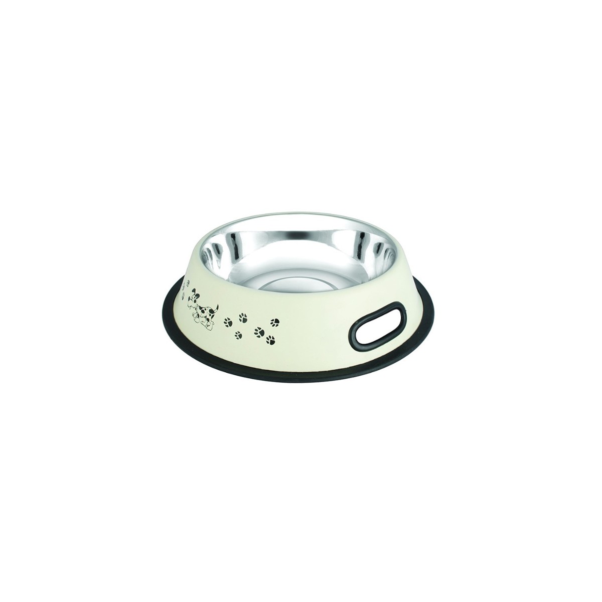 Zamieszczona jest na antypoślizgowej, gumowej obręczy, która zapobiega przesuwaniu, a kształt miski utrudnia jej przewrócenie.