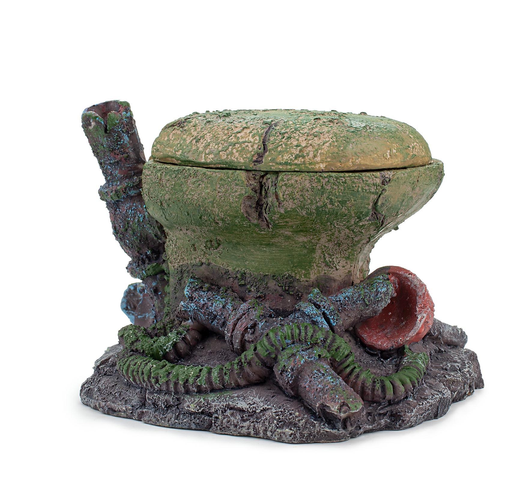 Ozdoba akwariowa wykonana z łatwo tonącego i bezpiecznego dla ryb, oraz innych zwierząt wodnych, poliestru.