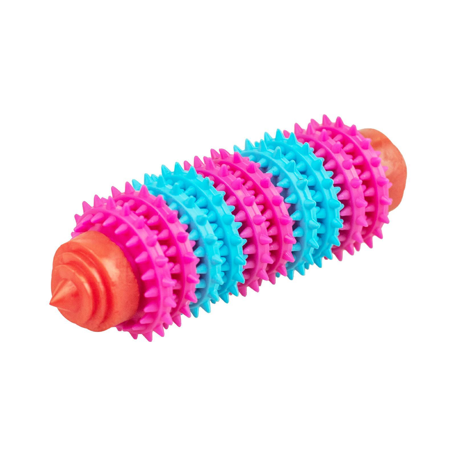 Zabawka wykonana jest z krążków gumowych o zróżnicowanej twardości i strukturze. Obracające się wypustki pomagają w utrzymaniu dobrego stanu uzębienia psa- doskonale masują dziąsła, czyszczą zęby oraz zapobiegają osadzaniu się kamienia nazębnego. Gryzak jest odpowiedni dla psów w każdym wieku, również szczeniąt. Wymiana uzębienia u szczeniąt (12-14 tydzień życia) jest etapem bardzo nieprzyjemnym– dziąsła bolą i swędzą, a zwierzę usiłuje złagodzić te dolegliwości gryząc różne przedmioty ze swojego otoczenia. Warto zadbać o komfort szczenięcia podsuwając mu zabawkę przynoszącą ulgę- można dodatkowo ją schłodzić.